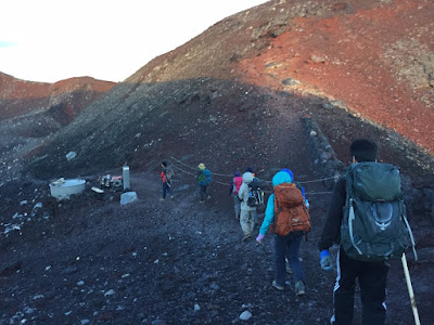 いつもの山行と比べて大分軽装でいったがそれでも周りと比べれば重装備。登山というより観光レベルで訪れている人がほとんどである。富士山を登って山を気に入った人たちが富士山装備、富士山感覚で他の山を訪れないのを祈るばかりである。